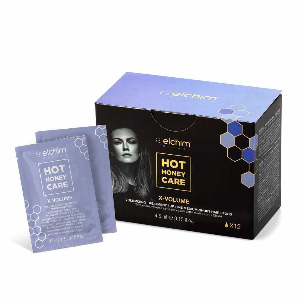 Hot Honey Care X-Volume ontwikkeld door Elchim-laboratoria is het enige 3-in-1-systeem dat het haar in één enkele beweging droogt, stylet en volume geeft. De behandeling, gecombineerd met het gebruik van Elchim haardrogers, transformeert het haar tijdens het drogen en stylen met onmiddellijk effect.