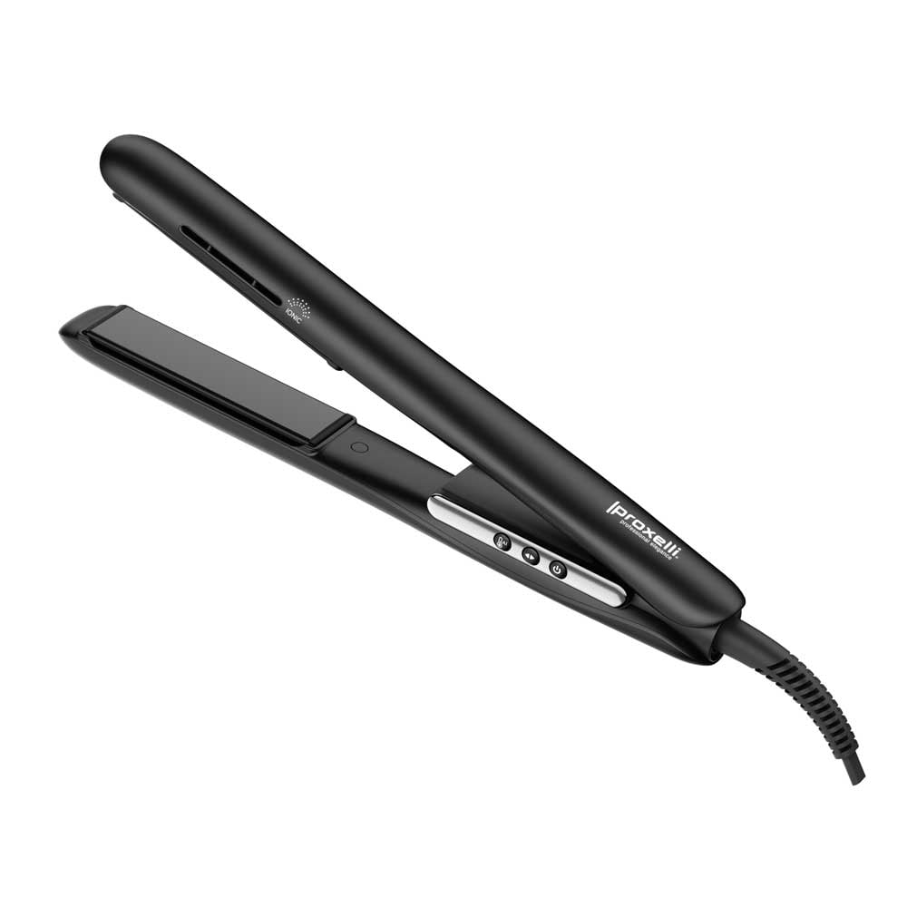 Ionische stijltang met keramische platen doordrenkt met macadamia-olie, arganolie en keratine. Een stijltang met dual-channel ionenuitlaat om negatieve ionen vrij te laten, op deze manier kan kroes worden geëlimineerd en het resultaat is glanzend en glad haar. 5 verschillende temperatuurstanden, van 130°C tot 230°C en een extra stand op 185°C voor een gezonde haarstyling.