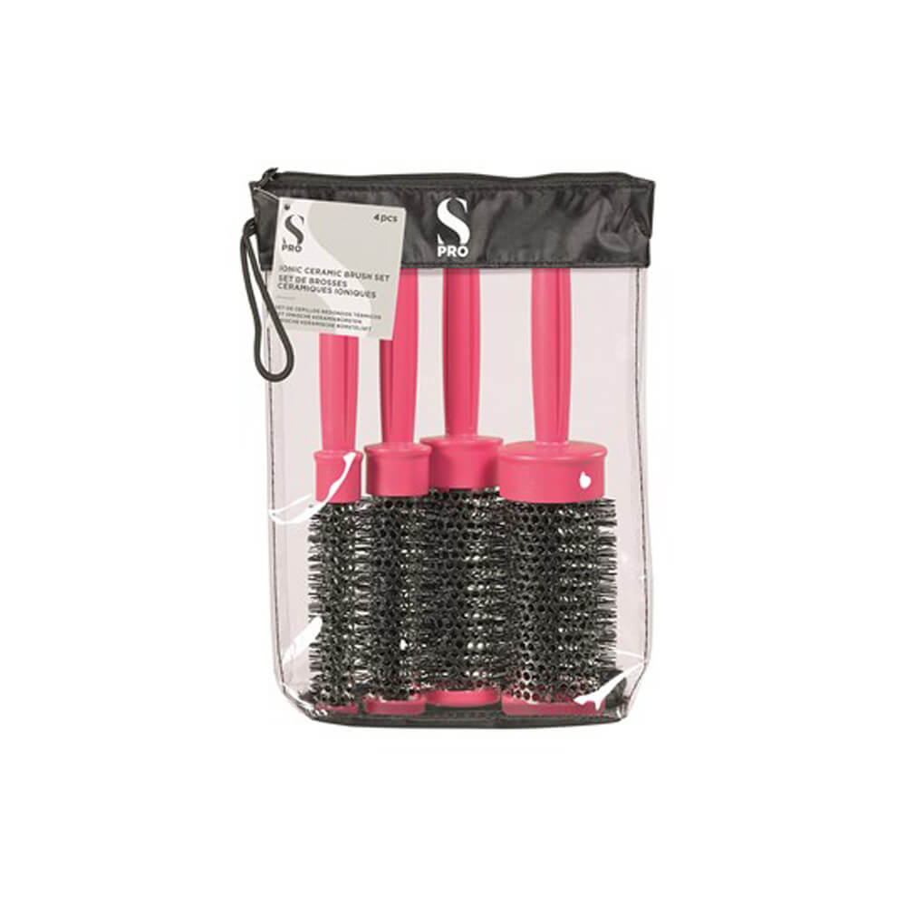 Set van 4 S-PRO Heat Retainer haarborstels in de volgende formaten: 15 mm, 25 mm, 34 mm en 44 mm.