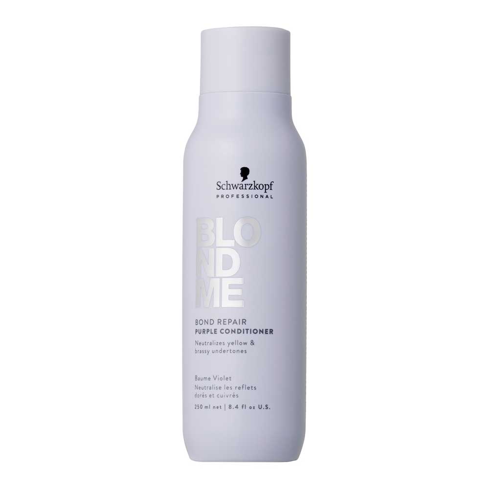 BLONDME Bond Repair Purple Conditioner met BOND REPAIR TECHNOLOGY neutraliseert gele ondertonen en helpt koperachtigheid te voorkomen. De conditioner verzorgt het haar intensief met een verzachtende formule, ontwart onmiddellijk van de lengtes tot de punten en geeft een zijdezacht gevoel. De conditioner is verrijkt met amandelolie en korenbloem en levert gerichte hoeveelheden koelpigmenten om een frisse koele tint te behouden voor een verbeterde helderheid van blond haar, zonder de haarkleur te veranderen. De conditioner herstelt de glans en glans van het haar en versterkt het haar door de innerlijke haarbindingen op te bouwen en herstelt schade die gelijk staat aan twee oplichtingsbehandelingen na slechts één gebruik.