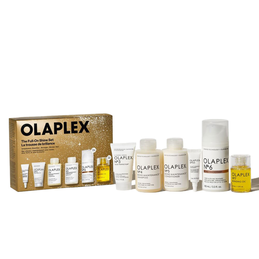<ul><li>Full-On Shine Hair cadeauset</li><li>Limited edition set voor glanzend glad en sterk haar in één keer.</li><li>--- ERROR ---</li><li>Geeft glans onmiddellijk een boost en biedt bescherming tegen hitte van 232ºC/450ºF Temt pluizig en weerbarstig haar Vermindert breuk hydrateert verzacht en maakt glad</li><li>125% meer glans172 uur pluiscontrole290% gladder beter doorkambaar beter gevoed3 1Vergeleken met gebleekt haar zonder toepassing van OLAPLEX N°.7 Bonding Oil™ 2N°.6 Bond Smoother® 3Bij gebruik als een systeem van N°.3 N°.4 N°.5</li></ul>