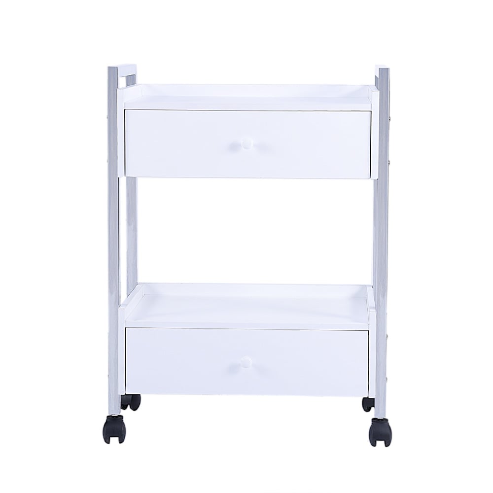 <ul><li>Schoonheidstrolley</li><li>2 Planken & 2 laden</li><li>Sterke MDF en metalen structuur</li><li>Op wielen</li></ul>